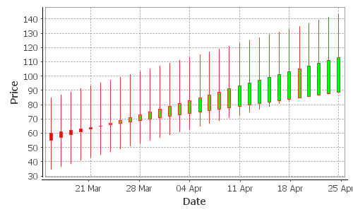 Candlestick of Rising Prices, Only High Low Columns Shown